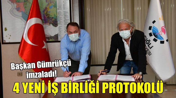 Göreve geldiği günden bugüne sivil toplum kuruluşları ve meslek odalarıyla iş birliği ve istişare içerisinde yönetimsel adımlar atan Çiğli Belediye Başkanı Utku Gümrükçü, son olarak TMMOB Makine Mühendisleri Odası İzmir Şubesi Yönetim Kurulu Başkanı Melih Yalçın ile dört farklı konuda iş birliği protokolü imzaladı.