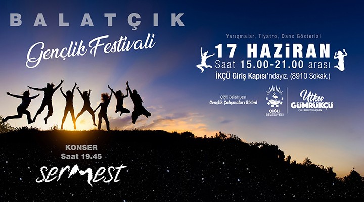 Çiğli Belediyesi Gençlik Çalışmaları Biriminin organize edeceği Balatçık Gençlik Festivali, 17 Haziran Cumartesi günü 15:00-21:00 saatleri arasında İzmir Katip Çelebi Üniversitesi giriş kapısında gerçekleştirilecek. Tiyatro ve dans gösterimlerinin yanı sıra çeşitli yarışmaların düzenleneceği festival, Alternatif Rock Müziğinin sevilen ekiplerinden Sermest konseriyle sona erecek.
