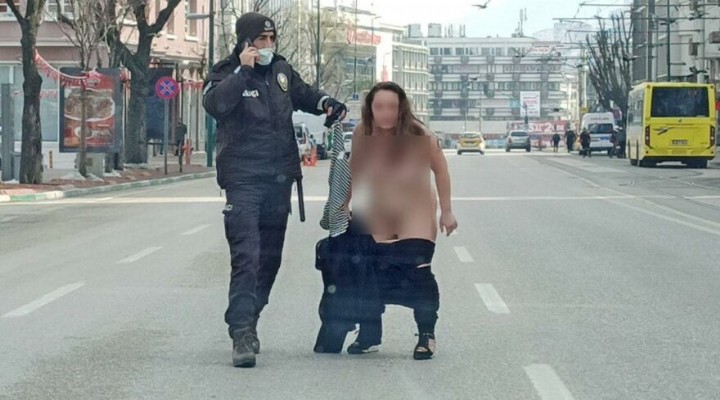 Bu sırada aynı cadde üzerinde devriye görevi yapan bir grup bekçi ile uygulama noktasındaki polis ekipleri bayana engel olmaya çalıştı. Bayanın kıyafetlerini toplayıp peşinden koşan ekipler kadını tarihi hanlar bölgesinin orada durdurup kıyafetlerini giymesi için razı etti.