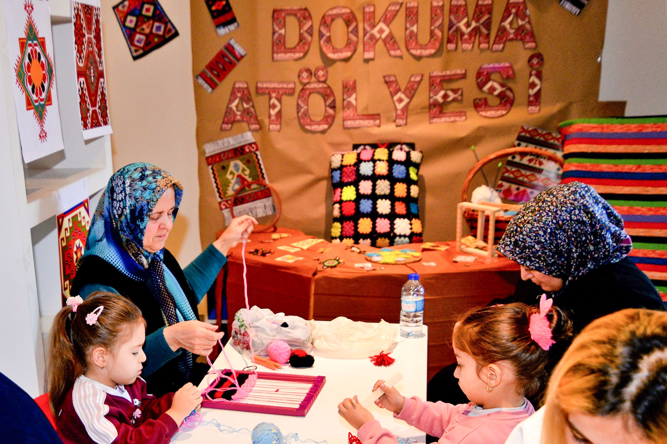 Atölye çalışmasında çocuklar, renkli ipler ve basit dokuma tezgâhlarıyla kilim dokurken; ebeveynler de sürece aktif olarak katıldı. Etkinlik, çocukların motor becerilerini, dikkat ve yaratıcılıklarını desteklerken aile–çocuk bağını güçlendiren keyifli anlara sahne oldu.9 mahallede 3–6 yaş grubuna ücretsiz hizmet