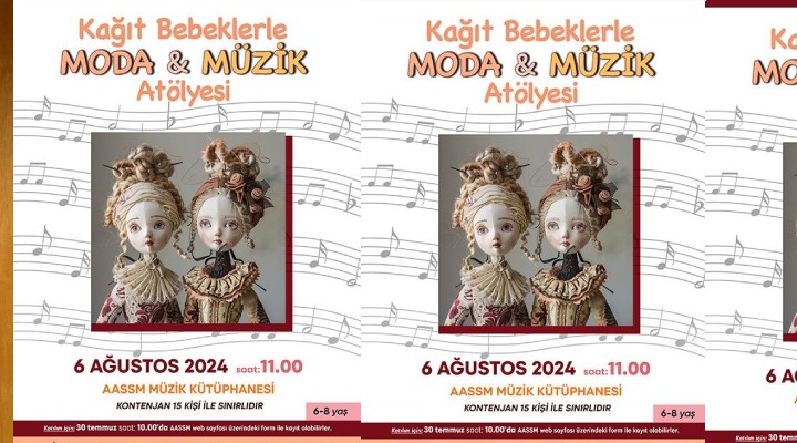 Kağıt Bebeklerle Moda ve Müzik Atölyesi, 6 Ağustos Salı günü saat 11.00’de İzmir Büyükşehir Belediyesi Ahmed Adnan Saygun Sanat Merkezi Müzik Kütüphanesi’nde 6-8 yaş arası çocuklar için gerçekleştirilecek. Atölyeye katılmak isteyen çocuklar için https://www.aassm.org.tr/ adresine giren veliler, 30 Temmuz saat 10.00’dan itibaren “Başvuru Yap” bölümündeki formu doldurarak kayıt yapabilecek. Barok ve klasik dönem temalarıyla tasarlanan atölyede çocuklar; sanat tarihi, kreatif düşünme, ince motor beceriler ve kültürel bilinç gibi konuları deneyimleyecek, sanatsal ve akademik anlamda da desteklenecek. Barok ve klasik dönemlerin özelliklerini eğlenceli bir şekilde öğretecek ücretsiz atölye, 15 kişilik kontenjanla sınırlı olacak.