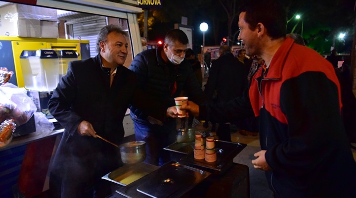 İzmir Metrosu’nun Bornova istasyonundaki çorba ikramına Bornova Belediye Başkanı Dr. Mustafa İduğ da katıldı. Vatandaşlarla birlikte sıraya girip çorbasını alan, sonra da kazanın başına geçip vatandaşlara ikram eden Başkan İduğ, “Herkesi soğuk havalarda verdiğimiz bu hizmetten yararlanmaya bekliyoruz” dedi.