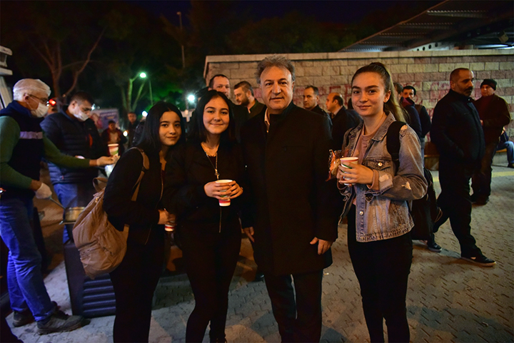 İzmir Metrosu’nun Bornova istasyonundaki çorba ikramına Bornova Belediye Başkanı Dr. Mustafa İduğ da katıldı. Vatandaşlarla birlikte sıraya girip çorbasını alan, sonra da kazanın başına geçip vatandaşlara ikram eden Başkan İduğ, “Herkesi soğuk havalarda verdiğimiz bu hizmetten yararlanmaya bekliyoruz” dedi.