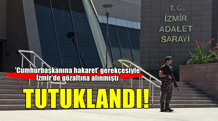 Cumhurbaşkanı Recep Tayyip Erdoğan'a sosyal paylaşım sitesi X üzerinden hakaret ettiği gerekçesiyle İzmir'de gözaltına alınan kişi tutuklandı.