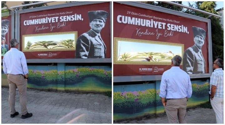 Çeşme Belediyesi, 29 Ekim Cumhuriyet Bayramı için dikkat çeken bir çalışma yaptı. Çeşme'nin her yerinde billboardlar için özel olarak tasarımlar hazırlandı.
