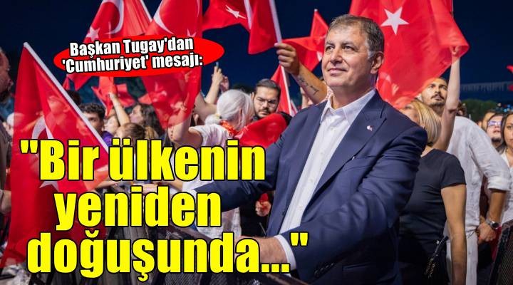 İzmir Büyükşehir Belediye Başkanı Dr. Cemil Tugay; 29 Ekim Cumhuriyet Bayramı nedeniyle yayımladığı mesajda Cumhuriyet’in kazanımlarına dikkat çekti. Ulu önder Gazi Mustafa Kemal Atatürk’ün bıraktığı mirasın gençlerin ellerinde sonsuzluğa taşınacağını ifade eden Başkan Tugay mesajında şu ifadelere yer verdi: