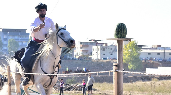 Bornova Kaymakamı Fatih Genel de at üzerinde ok attı.