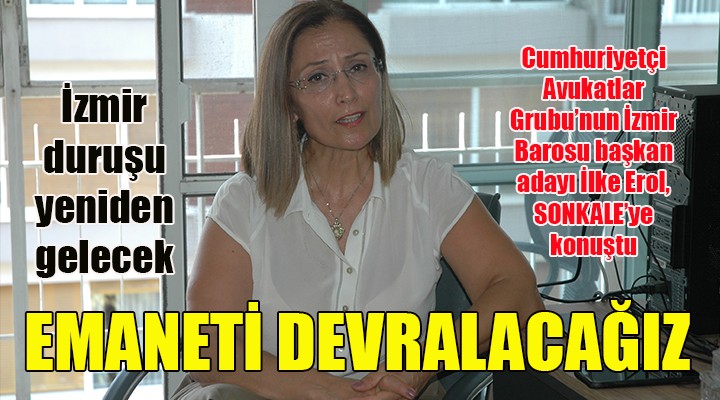İlke Erol, şunları söyledi: "İzmir Barosu'nda daha etkin bir yönetimin olması gerekiyor. Ülkenin, mesleğin, hem de meslektaşlarımızın sorunlarının daha etkin bir şekilde dile getirilmesi gerektiğini düşündüğüm için aday oldum. Cumhuriyetçi Grup olarak geçmişte yaptığımız hizmetlerin teminatı var. Biz bunu tekrar ortaya koyabiliriz. Mevcut yönetimden pek çok konuda ayrılıyoruz. Çoklu baro konusunu elbette onaylamıyoruz, kabul etmiyoruz. Ancak mevcut yönetim sadece söylemde kalıyor. İzmir'de biz 6 adliyeye bölünmüş durumdayız. Fiili olarak avukatlık yapmak çok zor. Baronun yaptığı tek eylem Adliye C Kapısı'ndan ek binaya kadar yürümek oldu."