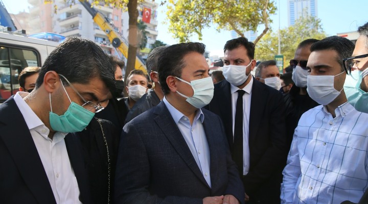 Bayraklı ilçesinde yıkılan Rıza Bey Apartmanı'nın enkazındaki çalışmalarla ilgili ekiplerden bilgi alan Babacan, depremde hayatını kaybedenlere Allah'tan rahmet, yakınlarına başsağlığı diledi.