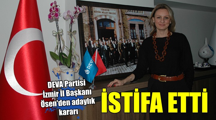 DEVA Partisi İzmir İl Başkanı Seda Kaya Ösen, milletvekili aday adaylığı için görevinden istifa etti.