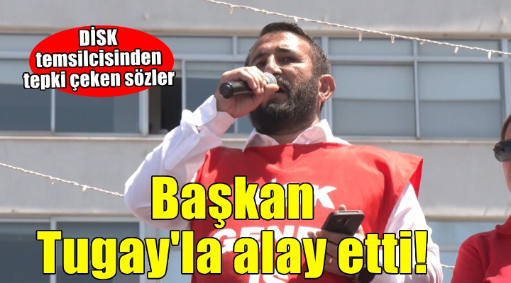 Ancak, kürsüde yapılan konuşmalar sırasında ilginç bir an yaşandı. DİSK Genel İş 2 No'lu Şube Başkanı Ercan Gül, önceki gece çöp toplamasına engel olmaya çalıştığı ancak başaramadığı İzmir Büyükşehir Belediye Başkanı Cemil Tugay'a yönelik tuhaf ifadeler kullandı.