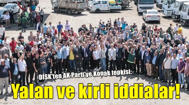 "20 yıldır ülkeyi kirlettiğiniz yetmedi şimdi de yalan ve iftiralarınızla İzmir’ in kalbi olan Konak Belediyesinin onurlu ve yiğit emekçilerinin üzerinden kirli siyaset yapıyorsunuz. Konak Belediyesi emekçileri 7/24 yağmur, çamur demeden bütün olumsuz hava koşullarına rağmen günde 2 milyon İzmir’ liye en iyi şekilde hizmet vermektedir. AKP Konak İlçe Başkanının bu asılsız, yalan ve kirli iddialarını şiddetle kınıyoruz. Konak Belediyesi Emekçileri işlerini bundan önce nasıl yaptıysa bundan sonra da gece gündüz demeden en iyi şekilde hizmetini sürdürecektir. Konak AKP ilçe başkanına buradan sesleniyoruz. Kirli siyasetinize asla izin vermeyeceğiz."