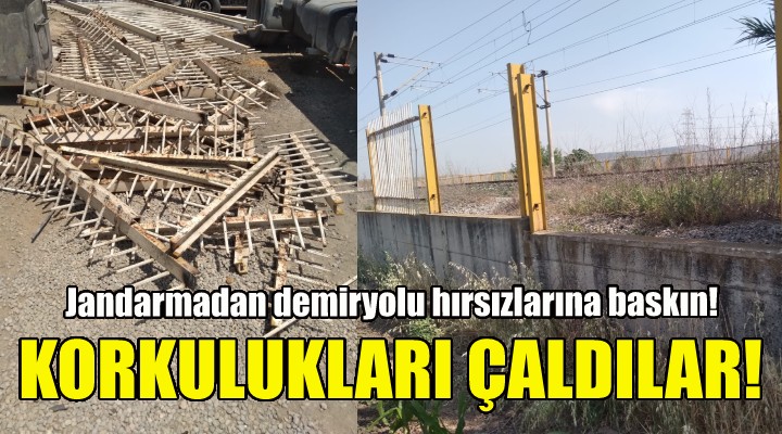 Menemen Hatundere Mahallesi'nde TCDD'ye ait demiryolu yolu hattındaki korkuluklar kimliği belirsiz kişiler tarafından çalındı. İhbar üzerine İzmir İl Jandarma Komutanlığına bağlı ekipler hırsızlık olayı ile ilgili çalışma başlattı. Güvenlik kameralarını inceleyen ekipler hırsızlık zanlılarını ve olayda kullandıkları aracın plakasını tespit etti.