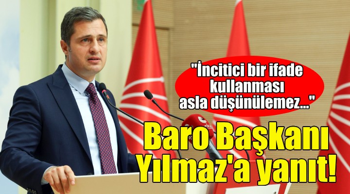 CHP lideri Özgür Özel'in İstanbul Cumhuriyet Başsavcısı Akın Gürlek ile ilgili sözleri sırasında kullandığı ''Başka iş bilmiyorsa avukatlık yapabilir'' ifadesine İzmir Barosu Başkanı Sefa Yılmaz tepki göstermişti.