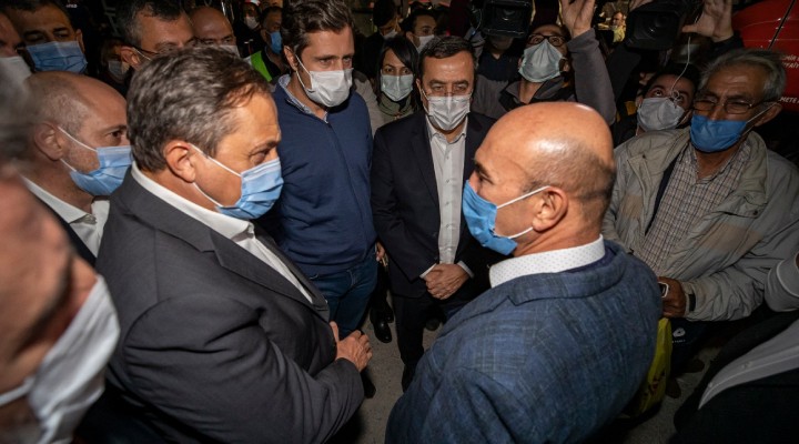 İzmir Büyükşehir Belediye Başkanı Tunç Soyer, geceyi Kültürpark’ta geçiren vatandaşları da ziyaret ederek onlara destek oldu