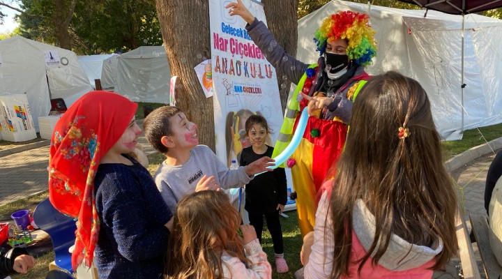 Narlıdere Belediyesi’ne bağlı Nar Çiçekleri Anaokulu’nun öğretmenleri, Bayraklı’daki deprem bölgesinde açılan stantlarda çocuklar için moral etkinlikleri düzenlemeye başladı. Depremin olumsuz etkilerini silmek adına yapılan çalışmalarda; yüz boyama, hamur oyunları, drama etkinlikleri ve resim boyama etkinlikleri yapıldı, çocuklara patlamış mısır dağıtıldı.