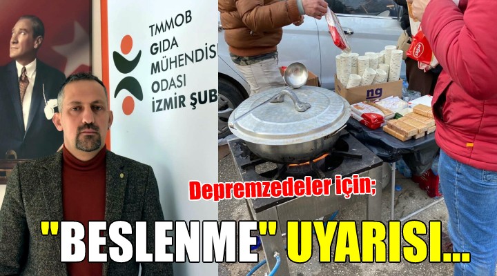 Toplanma ve barınma alanlarının dışında beslenme alanları oluşturulması gerektiğine de dikkati çeken Toprak, "Depremzedelerin ihtiyaçları sorgulanmalı. Çölyak veya diyabet hastalarının ihtiyaçları dahilinde beslenmesi sağlanmalı. Mutfaklarda gıda mühendislerinin bilgi birikiminden faydalanılmalı. Gönüllü vatandaşlar da arama-kurtarma ekipleri de birer afetzede sayılabilecek durumda. Bu nedenle bedenen güçlü olabilecekleri, enerji içerikli kuruyemiş gibi gıdalarla onlara takviye sağlanmalı" diye konuştu.