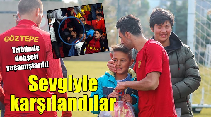 SONKALEİZMİR-Spor Toto 1. Lig'de yarın Adanaspor'a konuk olacak Göztepe'nin antrenmanında özel konuklar vardı. Altay derbisinde çıkan olaylar nedeniyle tribünde korku dolu anlar yaşayan iki kardeş Gökay (12) ve Güven (14) ile ağabeyleri Özay (17) ve baba Ayhan Özlü, sarı-kırmızılı takımın antrenmanına giderek oyuncular ve teknik heyetle görüştü.