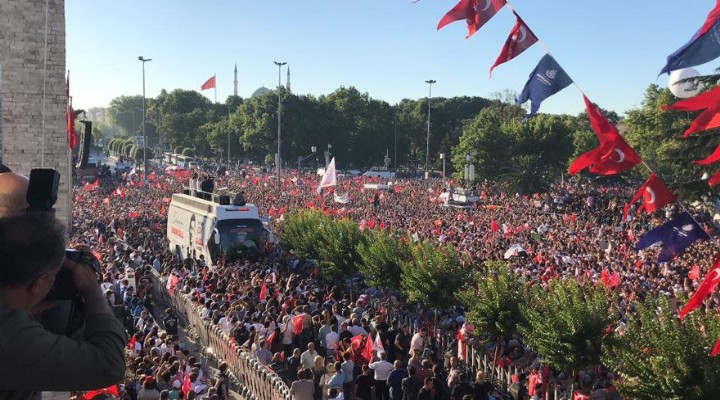 İstanbul bu millete büyük bir öz güven kazandırdı. İstanbullu dedi ki benim adalet duygularımla oynayamazsınız. İstanbullu dedi ki ‘Egemenlik kayıtsız şartsız milletindir’ dedi. (Mustafa Kemal’in askerleriyiz sesleri) İstanbullu 23 Haziran’da Cumhuriyete ve demokrasiye olan bağlılığını tescilledi. Bu tescil tüm dünyaya da şunu gösterdi Türkiye herhangi bir ortadoğu ülkesi değildir. Türkiye damarlarına kadar demokrasiye inanmıştır.