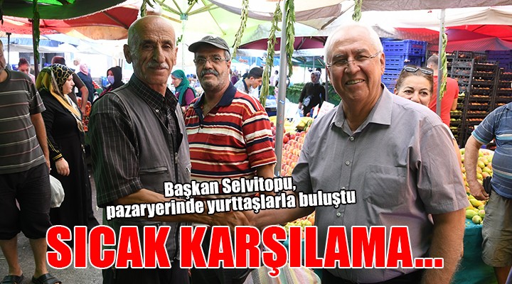 Başkan Selvitopu daha sonra mahallede kurulan Eskiizmir Pazarı'nı ziyaret ederek esnafla ve alışverişe gelen vatandaşlarla sohbet etti. Pazarcı esnafına hayırlı işler dileyen Başkan Selvitopu, talepleri, önerileri dinledi. Burada da Başkan Selvitopu'na sıcak ilgi gösteren ve çalışmalar nedeniyle teşekkür eden vatandaşlar, hatıra fotoğrafı çektirdi.