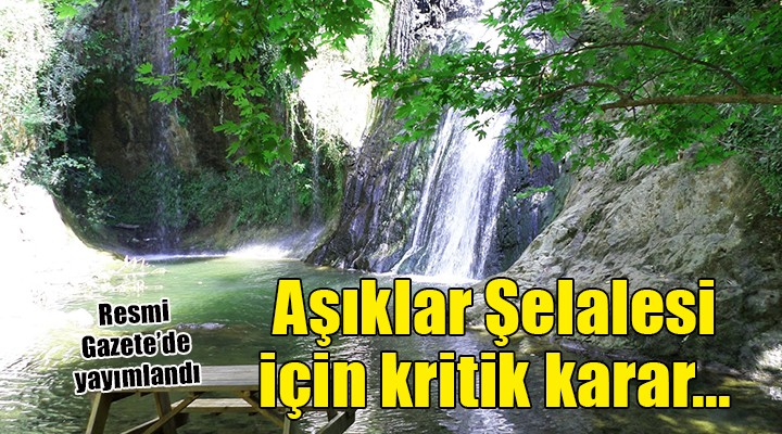 SONKALEİZMİR- Dikili Nebiler Şelalesi'nin sit statüsü Cumhurbaşkanı kararıyla değiştirildi. Resmi Gazete'de yayımlanan kararla Aşıklar Şelalesi olarak da bilinen bölge kesin korunacak alan olarak tescil edildi. Resmi Gazete'de yayımlanan karar şöyle: