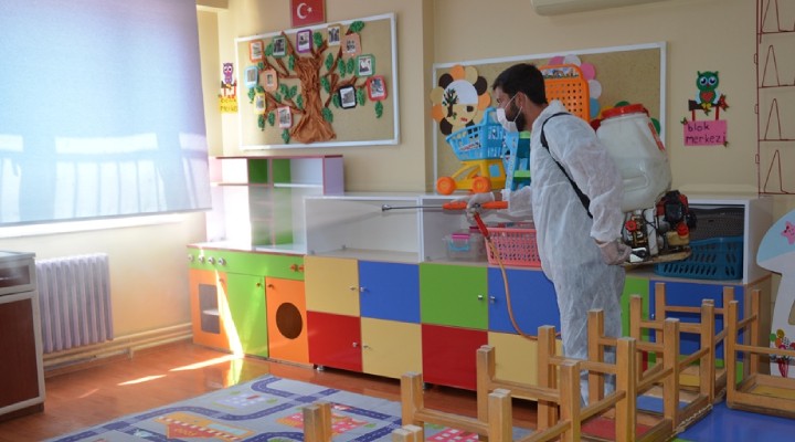 Dikili Belediyesi tarafından koronavirüs ile mücadele tüm hızıyla sürdürülürken, ilçe genelinde gerçekleştirilen dezenfeksiyon çalışmalarına okullar da eklendi. Pazartesi günü başlayacak yüz yüze eğitim öncesi ilçedeki tüm anaokulu ve ilkokullarda dezenfeksiyon çalışması gerçekleştirildi.