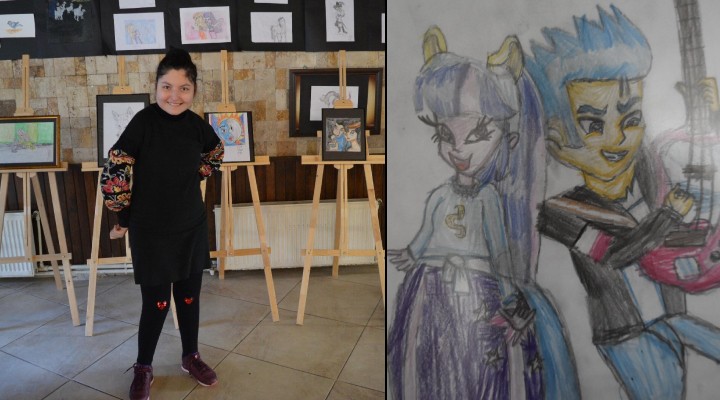 "Doğa'nın yüzde 96 bizim engel olarak görmediğimiz engelleri var. Sağ kol ve sağ bacağında güçsüzlük var. Konuşması hiç yok. Biz Doğa'nın bu rahatsızlığını yaklaşık 8 aylıkken öğrendik ve fizik tedavi ile özel eğitime başladık. Doğa'yı 8 yaşındayken kaynaştırma öğrencisi olarak bir ilkokula kaydettirdik. Doğa arkadaşlarından geri kalmaya başladı ve sırada otururken resim yapmaya başladı. Şimdi de özellikle izlediği çizgi filmleri çizmeyi çok seviyor. O dönemde hiçbir resim eğitimi almamıştı, ancak üç yıldır kursa gidiyor. Doğa resim yapmaya başladığı zaman en az iki saat boyunca o resmi bitirmeden bırakmıyor. İnsan İçin Umut Derneği'nin desteğiyle Doğa'ya açılacak sergiler bizi çok mutlu etti. Doğa'nın resim yeteneğinin evde kalmasını istemiyorum. Doğa'nın yeteneği duyulmalı çünkü gerçekten çok yetenekli ve bu alanda ilerlemesini istiyorum. Doğa'nın engellerinden dolayı başka ilerleyebileceği bir alan yok. En büyük hayalim ve dileğim, Doğa'nın resimleriyle tanınması."