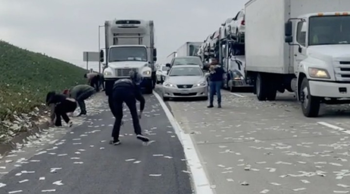 Otoyol devriye polisi yoldaki paraları toplayanları uyararak “O para ABD Federal Mevduat Sigorta Kurumu’na (FDIC) ait. İade edilmelidir” dedi.