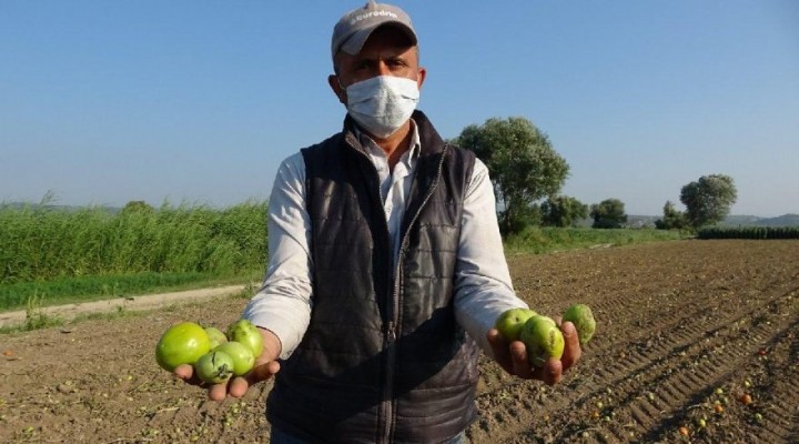 “Mustafakemalpaşa, Karacabey bölgesinde yüz bin dekar salçalık domates ekiliyor. Bölgede 2 aydır iklimsel şartlardan dolayı istenilen sıcaklığa ulaşılamadı. İlk olarak virüse yakalanan tarlalarımız oldu. Çiftçimiz bu tarlaları fidesiyle birlikte sürdü. Sonra yine hava şartlarının kapalı geçmesi nedeniyle mahsul mildiyö hastalığına yakalandı. Bu da yaklaşık ekili arazinin yüzde 70’ni etkiledi” diye konuştu.