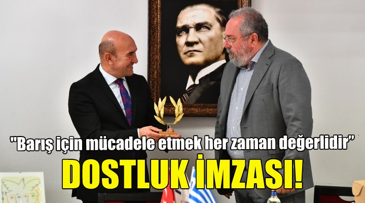 İzmir Büyükşehir Belediye Başkanı Tunç Soyer, “Sizleri burada ağırlamaktan mutluluk duyuyorum. Ülkeler arasındaki gerginliğin arttığı bu zamanlarda barış girişimlerinin daha önemli olduğunu düşünüyorum. Barış için mücadele etmek her zaman değerlidir. Gerginlik arttığı zaman bu daha da önemlidir. Bu nedenle toplantı için Bülent Tanık’a ve arkadaşlarına teşekkür etmek istiyorum. Bu beyanname ilişkileri geliştirmek için çok değerli. İki belediye başkanına de çok teşekkür ediyorum. Daha iyi bir gelecek için beraber çalışmaya devam edeceğiz” dedi.