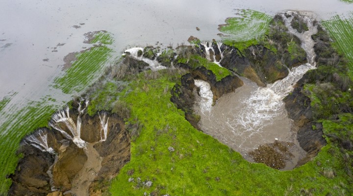 Düdenlerde oluşan su akıntısı drone ile görüntülendi.