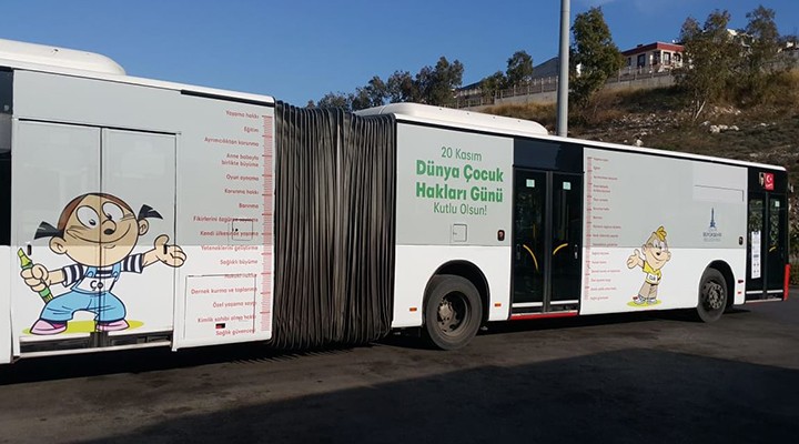 Çocuk dostu kent uygulamalarıyla öne çıkan İzmir Büyükşehir Belediyesi, 20 Kasım Dünya Çocuk Hakları Günü için farkındalık yaratmak amacıyla kentin ana arterlerinde çalışan 20 otobüsün üzerini, durak ve billboardları güne özel afiş ve tasarımlarla donattı. UNICEF’in başlattığı kent meydanlarının mavi ışıkla aydınlatılması uygulamasına Saat Kulesi’ni ışıklandırarak katılan Büyükşehir Belediyesi, 9’uncu Uluslararası Çocuk Hakları Film Festivali’ne de destek veriyor. 20-27 Kasım tarihleri arasında çevrim içi yapılacak festival “icrff.org” adresinden takip edilebilecek. Filmlere Türkçe ve İngilizce altyazılı olarak ücretsiz erişim sağlanabilecek