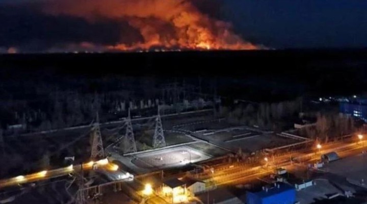 Ukrayna'nın Rus bombardımanlarının hedefi olan Çernobil'de yangın çıktı. Çevre Koruma ve Tabii Kaynaklar Bakanlığı tarafından yapılan açıklamada, “Rusların bombalamaları sonucunda ve ırkçıların ormanları ateşe vermeleri yüzünden çıkan yangınlarda radyasyon seviyesinde artış gözlemleniyor. Güncel uydu görüntülerinde yangınların 31 farklı noktada çıktığı tespit edildi” ifadeleri kullandı.