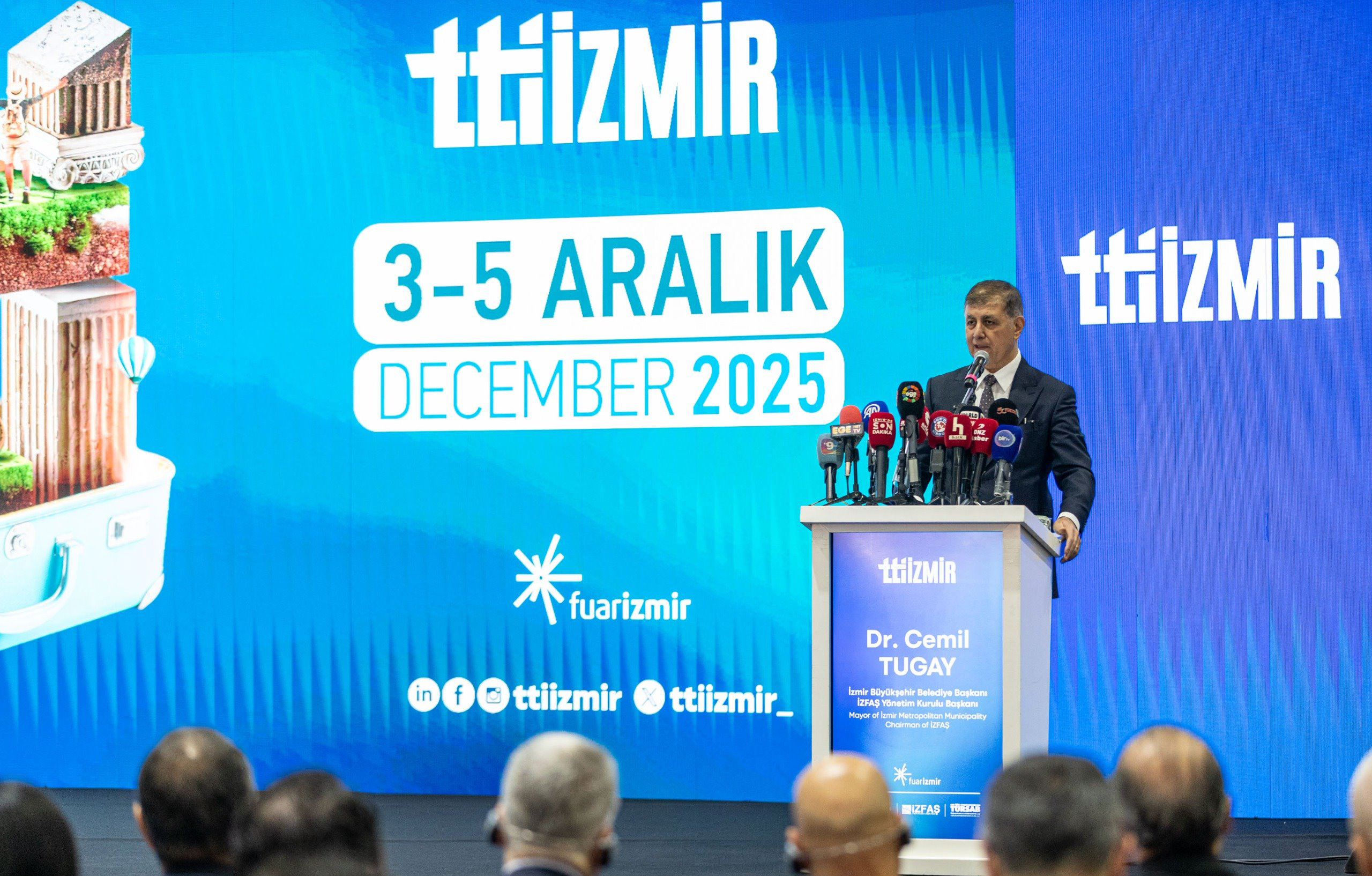 5 Aralık’a kadar turizm sektörünün yerli ve yabancı paydaşlarını bir araya getirecek TTI İzmir’in açılışında konuşan İzmir Büyükşehir Belediye Başkanı Dr. Cemil Tugay, fuara geçen yıldan 2 kat fazla katılımcı geldiğini belirterek “Şehrimizde turizmin gelişmesi için yoğun çaba gösteriyoruz. Turizm, çok sektörlü, yüksek katma değerli, nitelikli ve uzun vadeli bir yatırım haline geldi. İzmir’in tam da bu dönüşümün merkezinde yer alabilecek bir gücü olduğunu biliyoruz. Bu duygularla bu fuara daha fazla sahip çıkmak için çalışıyoruz” dedi.