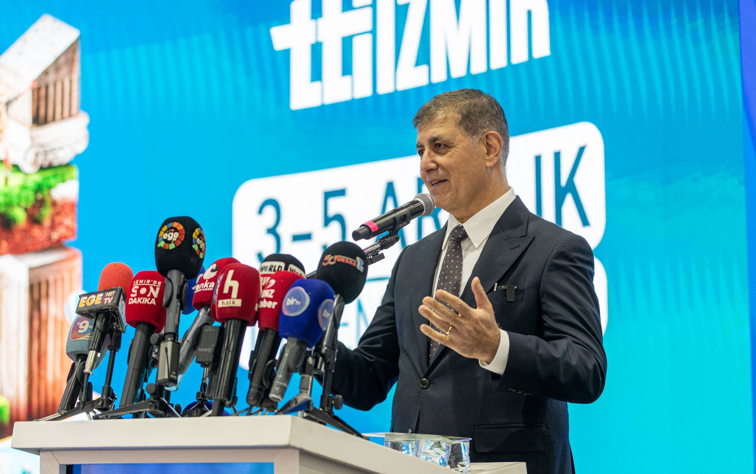 İzmir Büyükşehir Belediye Başkanı Dr. Cemil Tugay, “Bizler bulunduğumuz bölgenin turizm açısından çok önemli değerlere sahip olduğunu biliyoruz. Sadece İzmir 8 bin 500 yıllık kültürün üzerinde yaşayan insanların şehri. Anadolu’da 12-13 bin yıllık bir tarih söz konusu. Bir taraftan da yarattığımız kirlilik ve çevre sorunları, kaynakların tüketilmesi, iklim krizi var. Bunlar da hepimize dünyayı koruma sorumluluğu getiriyor. Bu güzel dünyanın kendi yaşam süremiz içinde elbette keyfini sürmeli, bütün güzelliklerini keşfetmeli, bunun için turizm sektörünü canlı tutmalıyız ama diğer taraftan sürdürülebilir yaşam için, gelecekte de güzelliklerin korunması için her birimize düşen görevler var” diye konuştu.