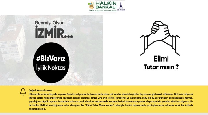 Kampanyada bir buçuk günde 33 bin 985 hijyen paketi, 21 bin 633 gıda paketi ve 6 bin 968 uyku tulumu Halkın Bakkalı ve Biz İzmir dijital platformları üzerinden satın alındı. Alınan paketler İzmir Büyükşehir Belediyesi tarafından depremzedelere ulaştırılıyor. İzmir Büyükşehir Belediye Başkanı Tunç Soyer, dünkü günlük bilgilendirme toplantısında uyku tulumu ihtiyacının desteklerle tamamen karşılandığını açıklamıştı.