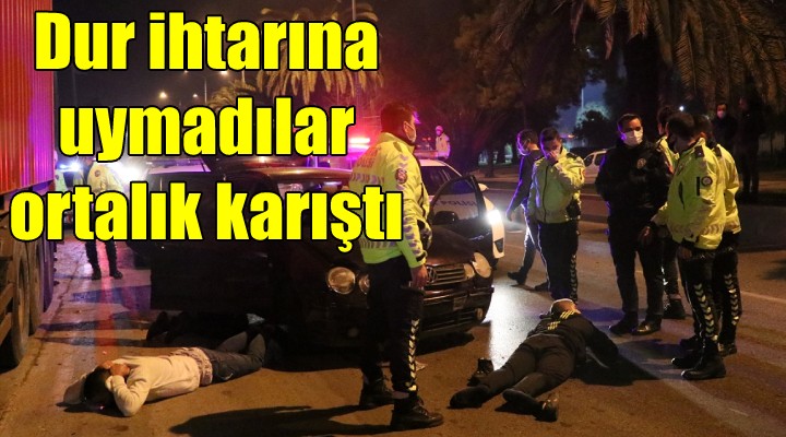 Alınan bilgiye göre, ismi henüz belirlenemeyen 35 AAJ 483 plakalı otomobilin sürücüsü, Basmane Meydanı'nda trafik polislerinin "dur" ihtarına uymayarak kaçmaya başladı. Polis ekiplerinin peşine düştüğü şüpheli, bazı caddelerde aracıyla ters yönden giderek izini kaybettirmeye çalıştı. Birçok polis ekibinin kavşaklarda önlem alması sonucu Halide Edip Adıvar Caddesi'ne giren içerisinde 2 şüphelinin olduğu otomobil, polislerin yolu kapatmasıyla refüje çarpıp durdu.