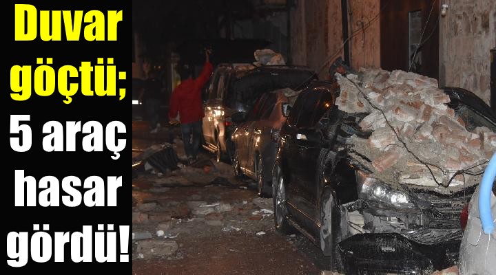 İzmir'in Konak ilçesindeki Anadolu Caddesi 1561 Sokak'ta, saat 18.00 sıralarında, güneşten korunmak için sokaktaki iki yapı arasına çekilen brandanın üzeri yağmur sularıyla doldu. Brandanın ağırlaşması sonucu bağlı olduğu duvar, ağırlığı taşıyamayarak çöktü. Gürültüyü duyan mahalleli durumu polise ve itfaiyeye bildirirken, park halindeki 5 araçta hasar meydana geldi. Olay sırasında hem araçlarda hem de sokakta kimsenin olmaması nedeniyle yaralanan olmadı. Hasar tespit çalışmalarının ardından sokağın temizlenip araçların da kaldırılacağı öğrenildi.