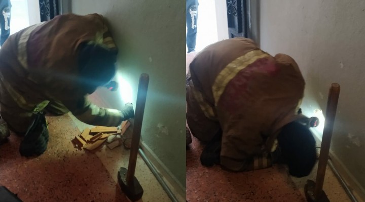 Olay, öğle saatlerinde Bozyaka Mahallesi 3127 Sokak'taki binada meydana geldi. Binanın giriş kısmında duvar arasında kedi sesini duyan vatandaşlar durumu itfaiyeye bildirdi. Olay yerine gelen ekiplerin yaptığı çalışmada, su saatlerinin bağlı olduğu ve bina duvarları içinden geçen, ana su borusundan ses geldiğini tespit etti. Hilti ile duvarı kıran ekipler, titiz çalışma sonrası kedileri sıkıştıkları yerden çıkardı. Apartman sakinleri, kedileri sıkıştığı yerden kurtaran itfaiye erlerine teşekkür etti.
