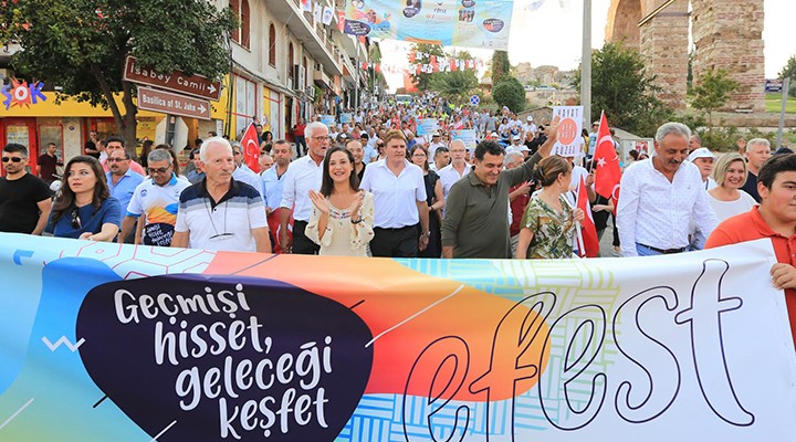 EFEST Festivali kültürü, sanatı, doğa sporlarını, gastronomiyi, çocuk aktiveleri ve alışverişi Selçuk sokaklarına taşıdı. Festivalin ilk günü olan dün etkinlikler, Zeytinköy Bisiklet Turu'yla başladı. Selçuk Belediye Başkanı CHP'li Filiz Ceritoğlu Sengel, sabah bisiklet topluluklarıyla birlikte Zeytinköy Kavşağı'ndan belediye hizmet binası önüne kadar pedal çevirdi. Başkan Sengel, daha sonra kentin kardeş şehirlerinden Makedonya'nın Radoviç kenti Belediye Başkanı Gerasim Konzulav ve Selçuk'un Almanya'daki kardeş kenti Siegburg Belediyesi bünyesinde yapılandırılan Kardeş Şehirler Birliği'nin Başkanı Manfred Hagen'i makamında ağırladı. Festivalin ilk sahnesi ise Köy Akademileri'nin çocukları için kuruldu. Çocuklar, İstasyon Meydanı'nda türküler söyledi. Ardahan Belediye Başkanı Faruk Demir, CHP Genel Başkan Yardımcısı ve Ankara Milletvekili Yıldırım Kaya ve tüm katılımcılar, köy akademileri çocuklarını beğeniyle dinledi. Konserin ardından çocuklar, festivalin konukları ve Selçuklularla birlikte EFEST Pazarı'nın açılışı için Saint John Bazilikası önünde buluştu. Pazarın açılışı sonrası, Selçuk sokaklarını renklendiren kortej yürüyüşüne geçildi. Saint John Bazilikası önünden başlayan yürüyüş, Engelsiz Gezi Parkı önünde son buldu. Başkan Sengel ve beraberindekiler, Türkiye'nin çeşitli illerinden gelenlerin açtığı stantları gezdi.