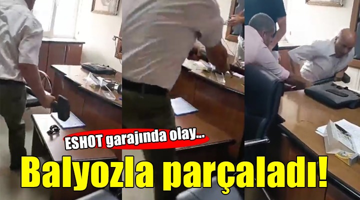 SONKALEİZMİR-Olay geçen hafta İzmir'in Çiğli ilçesinde bulunan ESHOT Genel Müdürlüğü'nde meydana geldi. Sendika temsilcisi olduğu belirtilen Oğuzhan Alkan, elinde balyozla garaj müdürünün odasına girdi.
