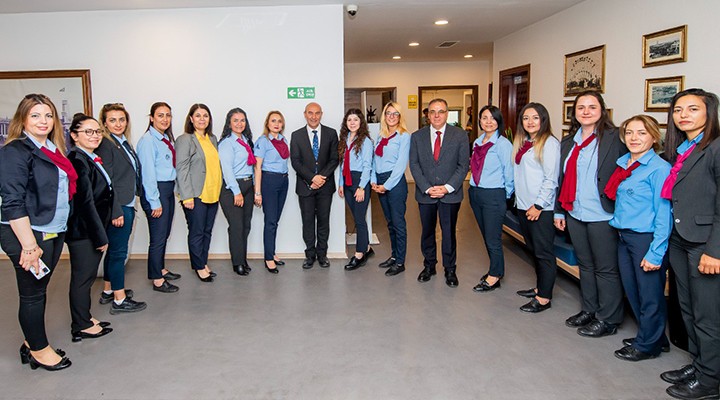 İzmir Büyükşehir Belediye Başkanı Tunç Soyer, İzmir Sanat Merkezi’nde bulunan çalışma ofisinde ESHOT’ta görevli 13 kadın şoförü ağırladı. Ziyarete ESHOT Genel Müdürü Erhan Bey ile Genel Müdür Yardımcısı Kader Sertpoyraz da katıldı. Nezaket ziyaretinde bulunan kadın şoförler Başkan Tunç Soyer’e doğum günü sürprizi yaparak pasta getirdi.