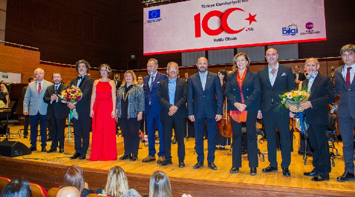 Gazeteci –Yazar Nihat Demirkol’un, bağımsızlıktan Cumhuriyet’e giden yolda Atatürk’ün sanata ve sanatçıya verdiği önemi anlattığı sunumun ardından, izleyiciler İstiklal Marşı’nı orkestra eşliğinde hep bir ağızdan okudu. Sanatçılar Dilek Türkan ve Teyfik Rodos, Cumhuriyet yıllarından günümüze, şarkılar, türküler ve tangolar seslendirdi. Gecenin sonunda salonu dolduran İzmirliler ellerinde bayraklarla 10. Yıl Marşı’nı ve Memleketim şarkısını sanatçılarla birlikte söyledi.