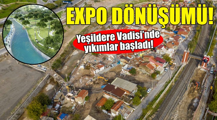 İzmir Büyükşehir Belediye Başkanı Tunç Soyer’in çabalarıyla kentin 2026’da ev sahipliği yapmaya hak kazandığı Uluslararası Bahçe Bitkileri EXPO’sunun (Botanik EXPO 2026) hazırlıkları kapsamında Yeşildere Vadisi’nde kamulaştırılan binaların yıkımları devam ediyor. İzmir’in sosyal donatı ve yeşil alanını artıracak dev proje için Atatürk Maskı’nın altından başlayarak İZBAN hattı ile Meles Deresi ve Yeşildere Caddesi arasında kalan bölgede çalışmalar sürüyor. İzmir Büyükşehir Belediyesi Fen İşleri Dairesi tarafından yürütülen yıkım çalışmaları kapsamında Konak’ın Lale, Vezirağa ve Küçükada mahalleleri içerisinde kalan toplam 76 binanın yıkımı tamamlandı.