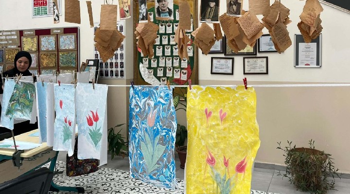 Dilek Hasırcı, öğrencilerinin 3 aydır birçok ebru sanatı türünü yaptığını belirtip, "Kitap ayraçları, kitap kapları, ebrunun üzerine hat sanatları gibi ilgi çekici hale getirdikleri tablolar da yapıp hazırlığımızı tamamlayacağız. Öğrencilerim hem sanatı icra ederken hem de her aşamasında bilimi de görmüş oluyorlar. Deneyimleyerek, sanat ile bilimin iç içe olduğunu da öğrenmiş oluyorlar. İkisi bir arada olduğunda disiplinler arası çok daha güzel şeyler ortaya çıkıyor" ifadelerini kullandı.