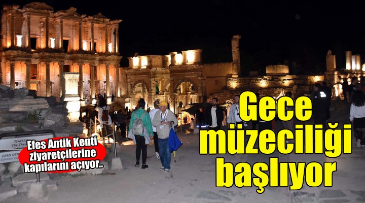 Efes Müze Müdürü Murat Kaleağasıoğlu, "Gece müzeciliği uygulaması geçen yıl başlatılmıştı. Sosyal medyada en popüler konulardan biri Celsus'un ışıklarının açılması olmuştu. Bu yıl da bütün ziyaretçileri Efes Antik Kenti'ne ve müzemize bekliyoruz" dedi. Efes Antik Kenti kazılarda bulunan ve çevreden toplanan eserlerin korunması amacıyla 1929 yılında Selçuk'ta oluşturulan depo, güney bölümünün inşası tamamlanarak 1964 yılından bu yana müze olarak ziyaretçilerini ağırlamaya başladı. 1976 yılında kuzey bölüm inşa edilerek genişletilen ve 2014 yılında onarım düzenleme çalışmalarıyla bugünkü şeklini alan Efes Müzesi teşhir bölümündeki 6 salon ve bir bahçesi ile birbirinden değerli arkeolojik eserlere ev sahipliği yapıyor. Artemis Heykeli, Kybele Adak stelleri, İmparator Domitian Heykel Başı, Traian Fil Dişi Firizi, Eros Başı gibi önemli eserlerin yer aldığı müzenin bugünden itibaren her çarşamba, perşembe, cuma ve cumartesi 19.00- 23.00 saatleri arasında ziyaretçilerini ağırlayacağını söyleyen Efes Müze Müdürü Murat Kaleağasıoğlu, yerli ve yabancı ziyaretçi sayılarının her geçen gün arttığını ifade etti.