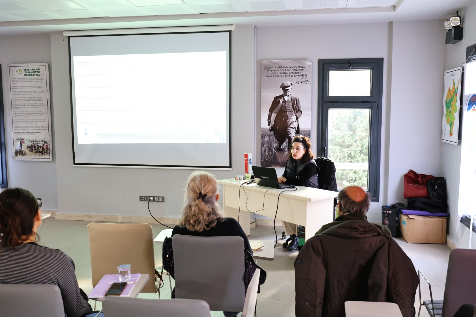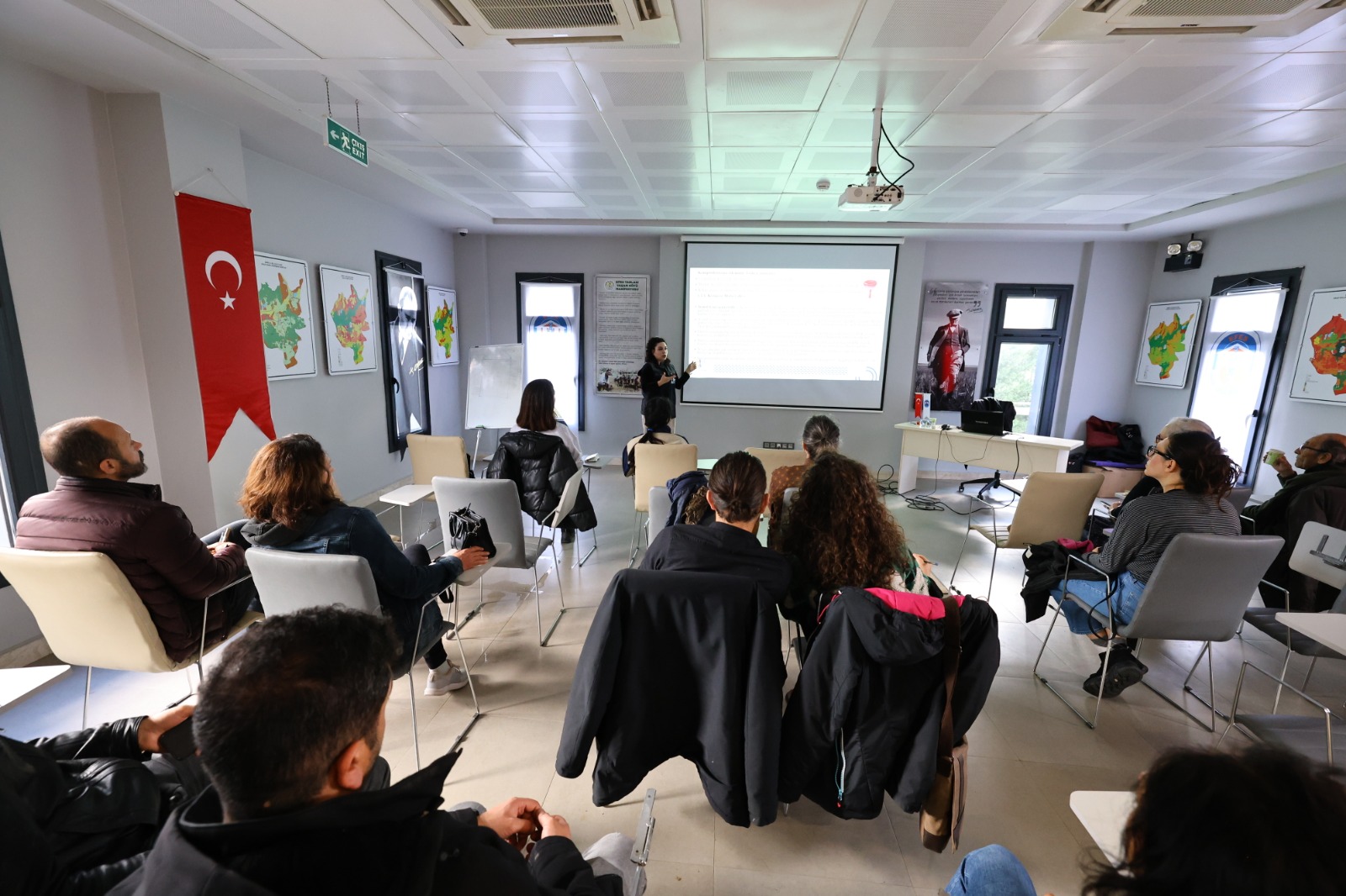 Organik Tarım Teknikeri Elif Ceylan Çelik Sönmez’in anlatımıyla gerçekleşen eğitimde mantar çeşitleri ve yetişme koşulları, kompostlaştırma işleminin başlıca adımları, kompost hazırlığı, örtü toprağı ve örtü toprağının dezenfeksiyonu gibi birçok başlık ele alındı.
