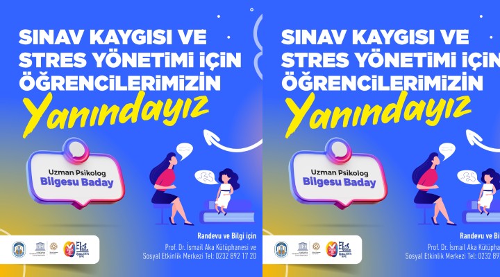 Öğrencilerin sınav süreçlerini daha sağlıklı yönetebilmeleri için danışmanlık almalarının önemini vurgulayan Uzman Psikolog Bilgesu Baday; “Kaygıyı insanların kişisel düşünceleri ortaya çıkarır. Bu yüzden kaygılarımız özneldir. Sınav kaygısı da bunlardan biridir. Sınav kaygısı kişinin gerçek performansını ortaya koymasını engeller. Olası olumsuz sonuçlar veya başarısızlık ile ilgili kaygılara eşlik eden bilişsel, davranışsal ve fizyolojik belirtilerin yaşanması durumu olarak tanımlanmaktadır. Öğrencilerimizin sınav sürecini daha işlevli ve sağlıklı bir şekilde yürütebilmek amacıyla danışmanlık almaları önemlidir. Sınav kaygısı psikolojik danışmanlıkla desteklenirse süreç en sağlıklı şekilde yürütülebilir. Bu yüzden de öğrencilerimizin sınav kaygılarının üstesinden gelmeleri ve girecekleri sınavda daha iyi bir performans gösterebilmeleri için Prof. Dr. İsmail Aka Kütüphanesi ve Sosyal Etkinlik Merkezi’nde bir araya gelerek her öğrenci özelinde görüşmelerimizi yapacağız” dedi.