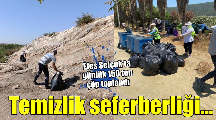 Bayram tatili boyunca, Efes Selçuk'ta günlük olarak toplanan çöp miktarı yaklaşık 60 tondan, 150 tona çıktı. Efes Selçuk Belediyesi Temizlik İşleri Müdürlüğü ekipleri, bu artışı karşılayabilmek için sahil boyunca temizlik çalışmalarını aralıksız sürdürdü.