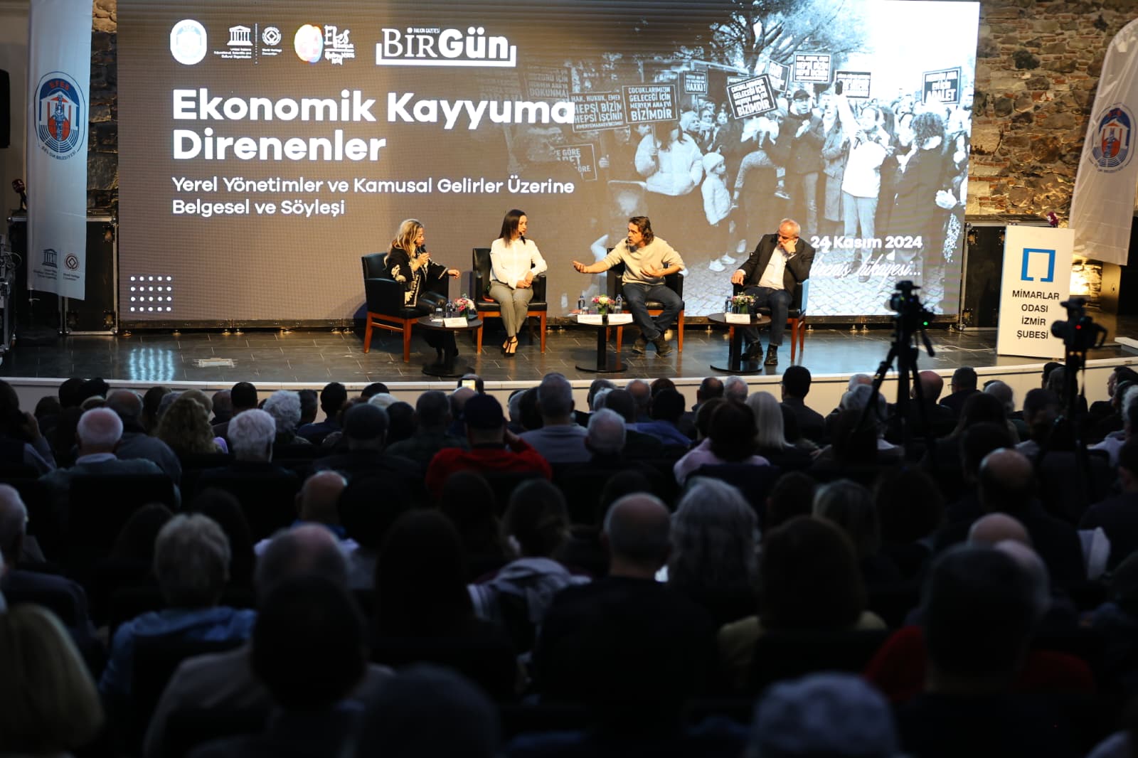 Belgeselin ardından gerçekleşen söyleşinin moderatörü Dilek Gappi, farklı kayyum uygulamalarının Türkiye’nin çeşitli kentlerinde yaşandığını İzmir üzerinden örneklendirerek; “Türkiye adına, Türkiye’nin tarihine not düşülmesi adına; bir halkın, bir kentin ayağa kalkarak hakkını araması bence çok değerli bir mücadele. Başta Filiz Başkan olmak üzere direnişe katılan herkese sevgilerimi gönderiyorum. Aycan Karadağ başta olmak üzere belgesele emek veren tüm meslektaşlarıma teşekkür ediyorum. Artık öyle bir noktadayız ki; evet, Efes Selçuk bir sembol. Son bir haftada İzmir bambaşka bir mücadele veriyor. Üç binasına birden el konulmaya çalışılıyor. Bunların hiçbiri kabul edilemez. Bu direniş öykülerinden Türkiye’nin çok daha güçlü modeller çıkaracağına eminim” dedi.